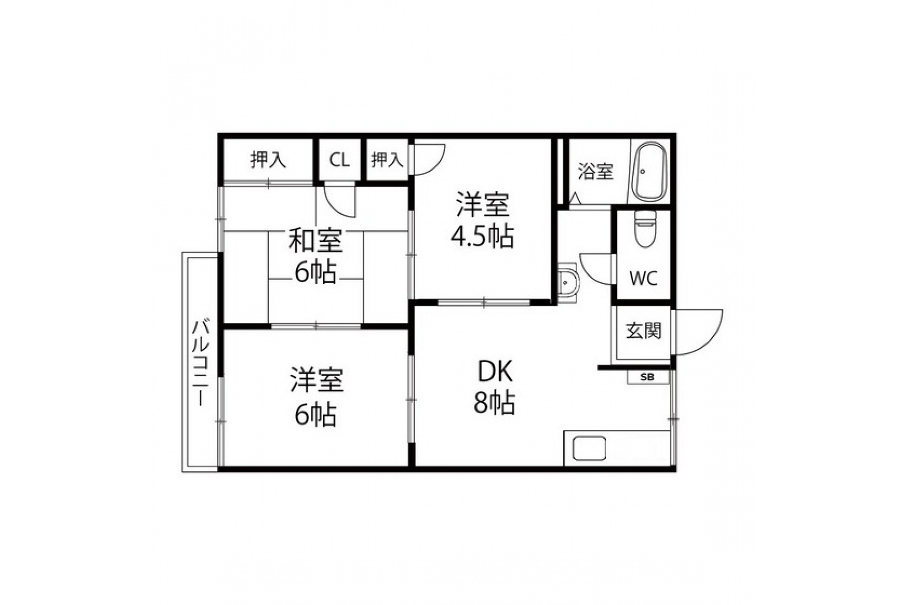 洋室 6 帖 洋室 4.5 帖 和室 6 帖 |